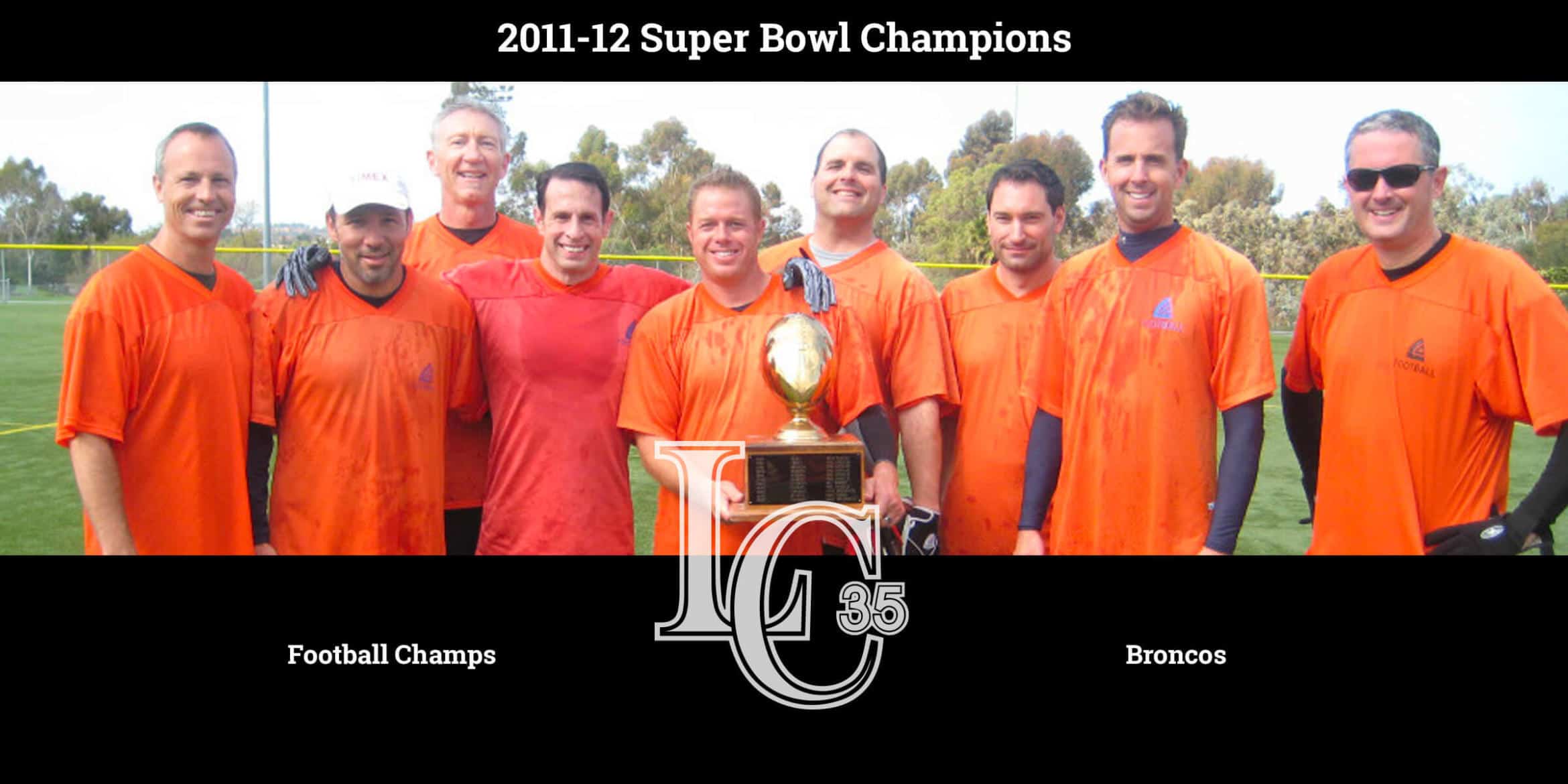 2011-12 Football Home ⟩ Leagues ⟩ Football ⟩ 2011-12 Football 2011 – 2012 Football Allen Gidner Football Commissioner Email: *protected email* for questions regarding the LC35AC Football League. Ted Carr & Todd Kuhlman Wreck Football (formerly Legends) Commissioner Email: *protected email* Congratulations to the 2011 Super Bowl Winners! 2011-12 Super Bowl Champs – Broncos BroncosTeam Photo (l to r): Jim MacGregor, Frank Ortega, Tony Fodor, Drew Nordlicht, Haven Dunn, Greg Beauchane, Brandon Linster, Darren Bayless (QB), Andrew Harvey