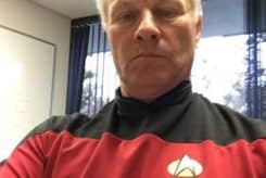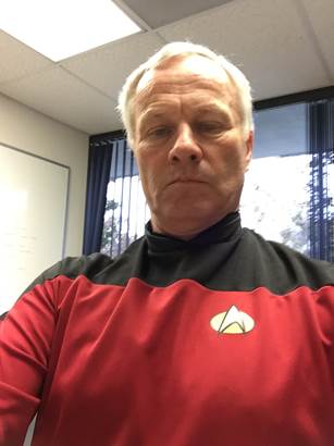 Legends Commissioner Frantz taking a break from the bridge of the Enterprise in order to monitor his minions