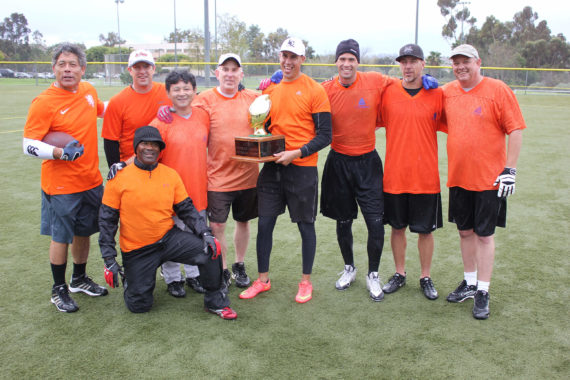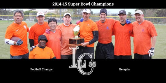 2015-16 Super Bowl Champion – Bengals Front Row: Bo Whiting Back Row (L to R): Jim Romaine, Matt Ray, Mikey Yasumatsu, John Schleimer, Jeff Woods (QB), Josh Wright, Sean Mitchell, Alan Pickering
